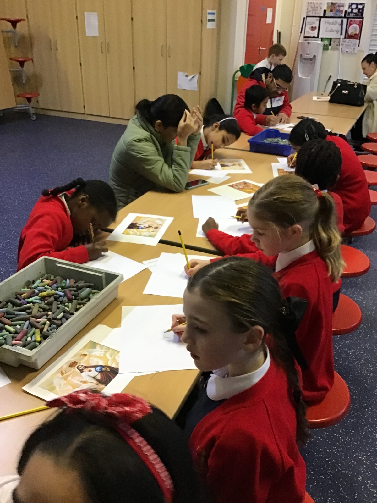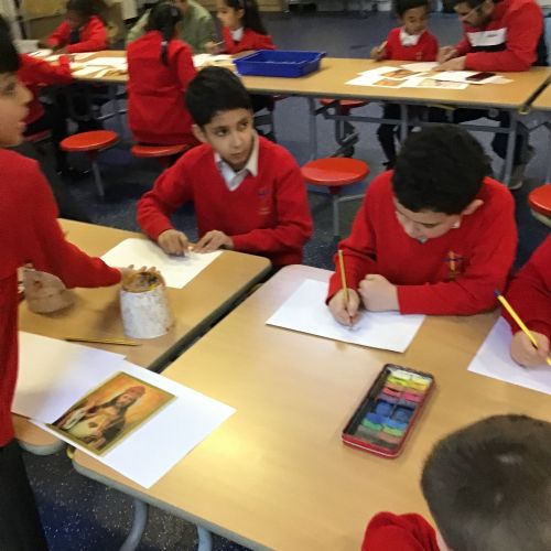 Year 4 discussed how Advent is a time of preparation for Jesus' incarnation at Christmas and for the second coming as King of the Universe. They also explored how some artists have depicted Jesus as King and created their own artwork showing Jesus Christ, King of the Universe.