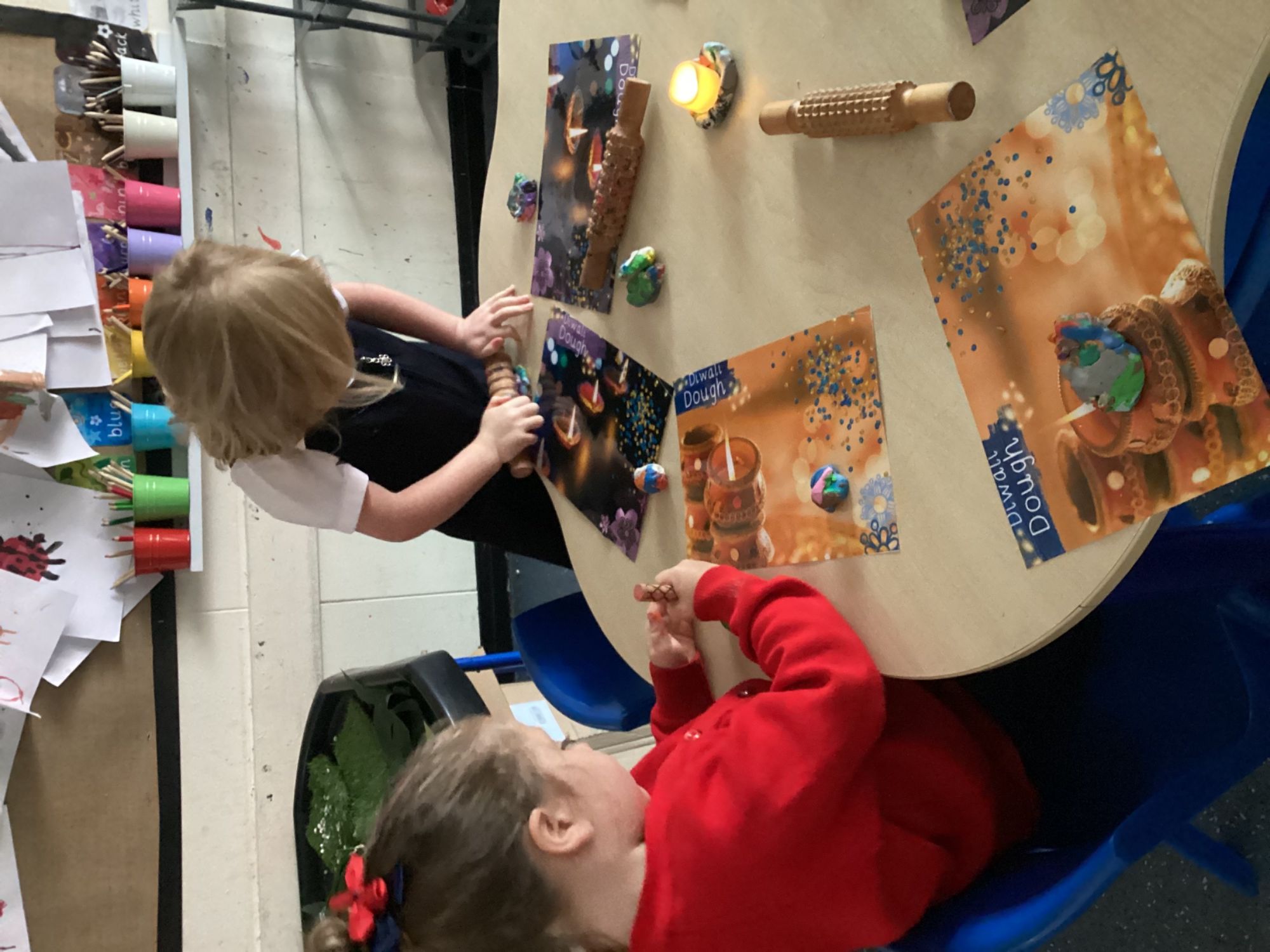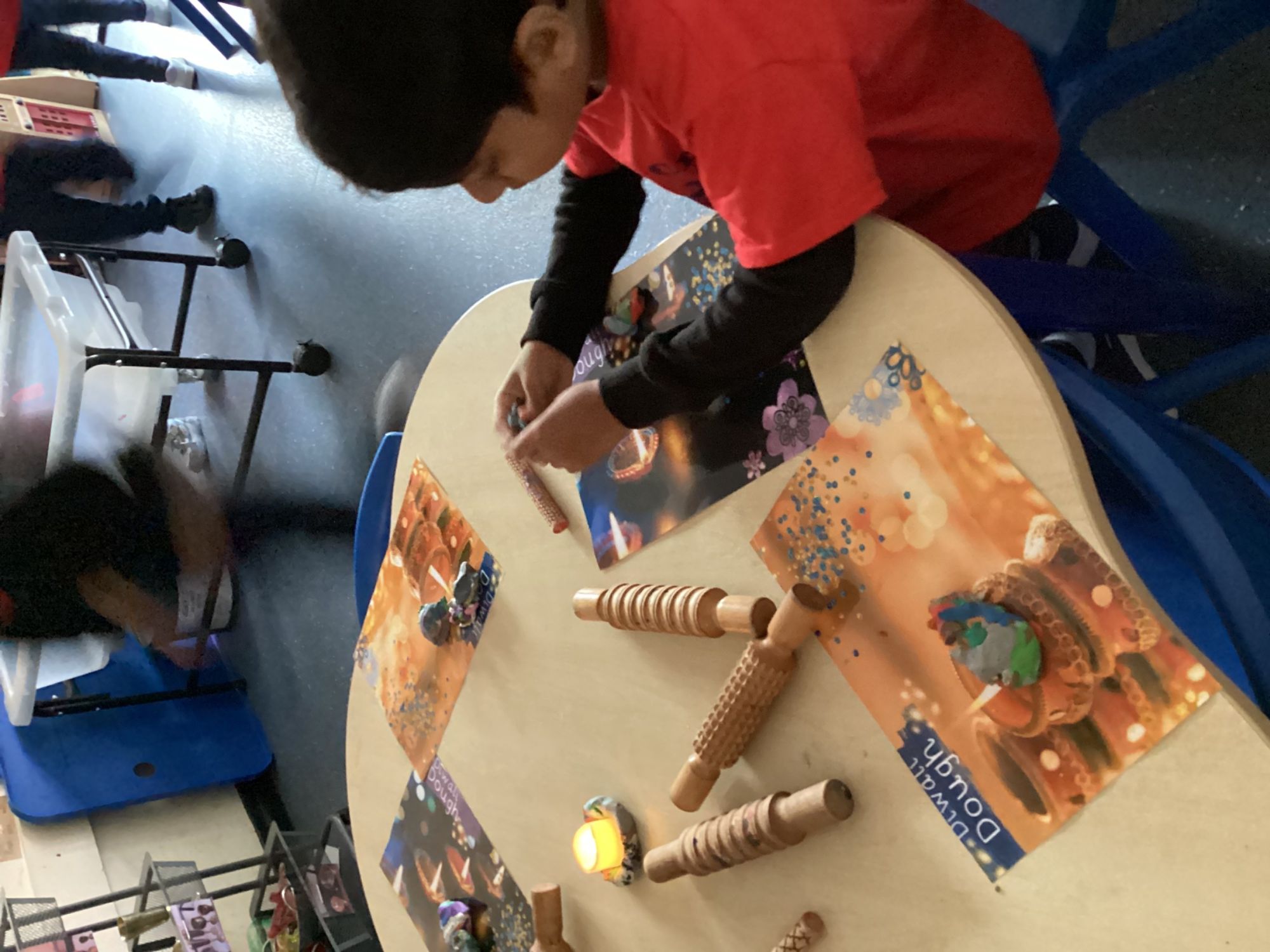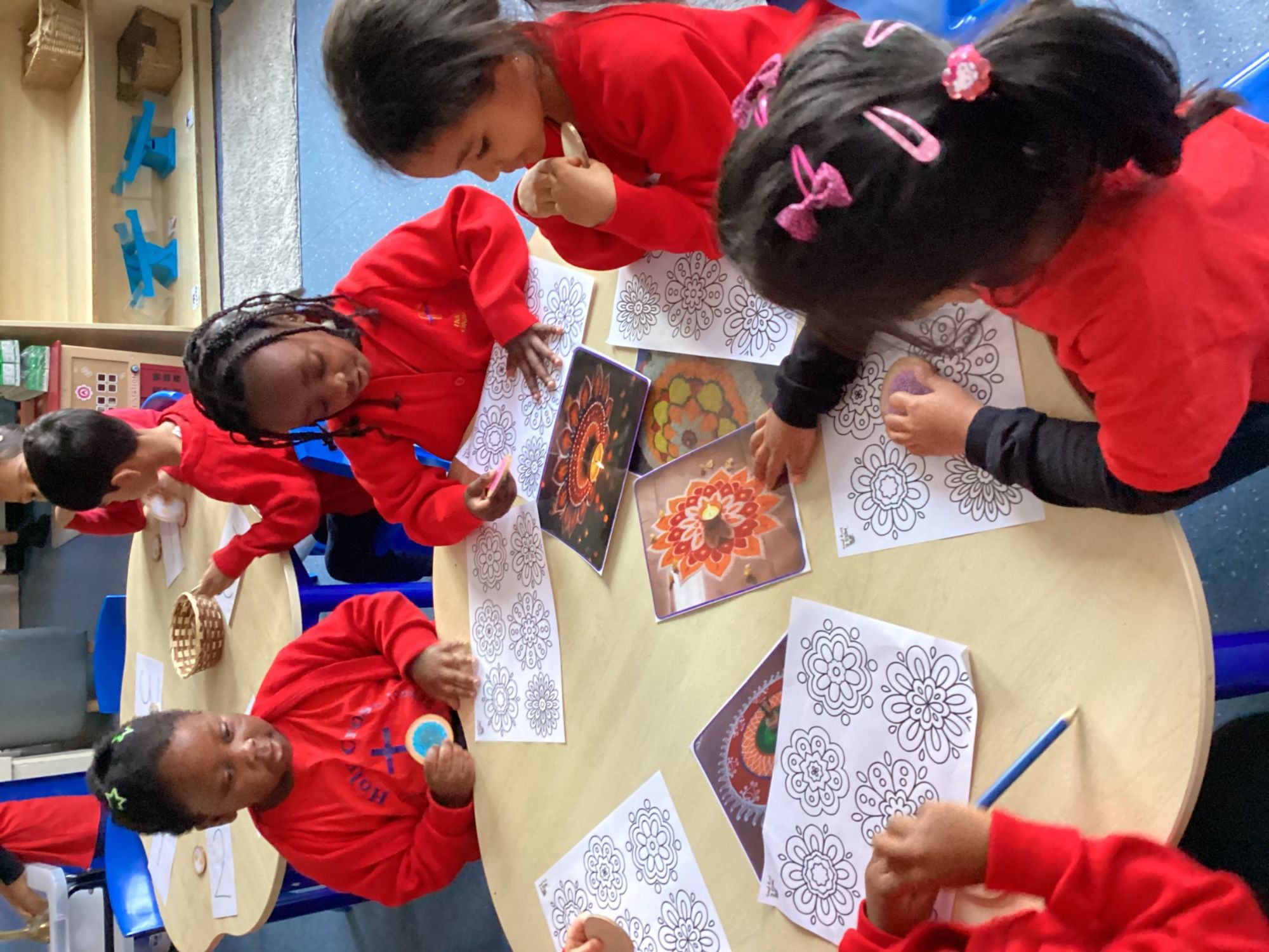 This week, the children have been learning about Diwali! They explored the tradition of lighting diva lamps and made their own using paper plates, developing their creativity and imagination. They also used clay to shape diva lamps, which supported their fine motor skills and artistic expression. While creating colourful Rangoli patterns, the children practised their mathematical skills, spotting and making patterns.