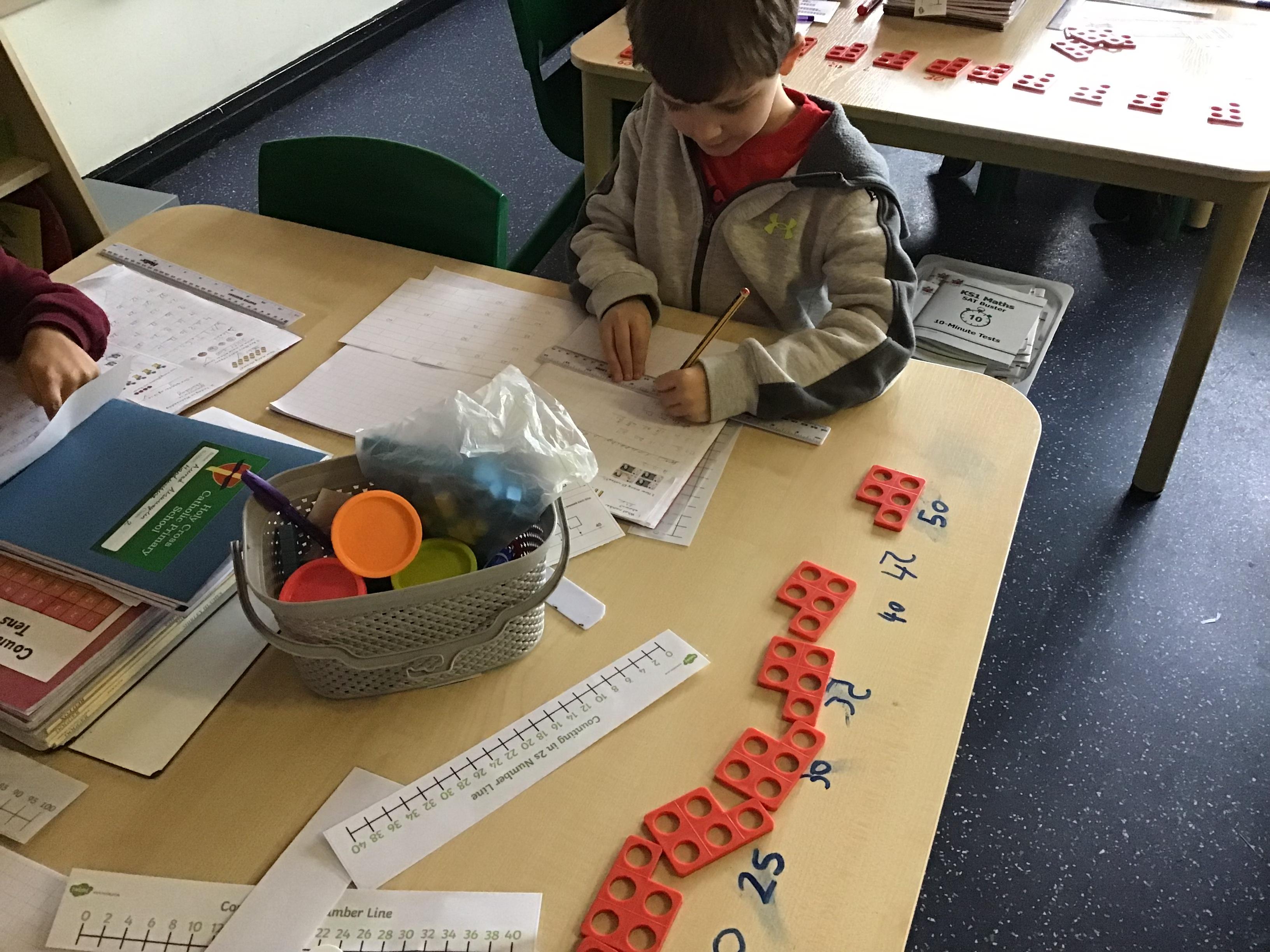 In all classes there are children of differing mathematical ability. We recognise this fact and provide suitable learning opportunities for all children by matching the challenge of the task to the ability of the child. We achieve this through a range of strategies – in some lessons through differentiated group work and in other lessons by organising the children to work in mixed-ability pairs on open-ended problems or games. We use Learning Support Assistants to support some children and to ensure that work is matched to the needs of individuals. Our Learning Support Assistants at Holy Cross are also trained in the Maths intervention of Precision Teaching - which is a ten-minute quick intervention of recalling basic number facts.
