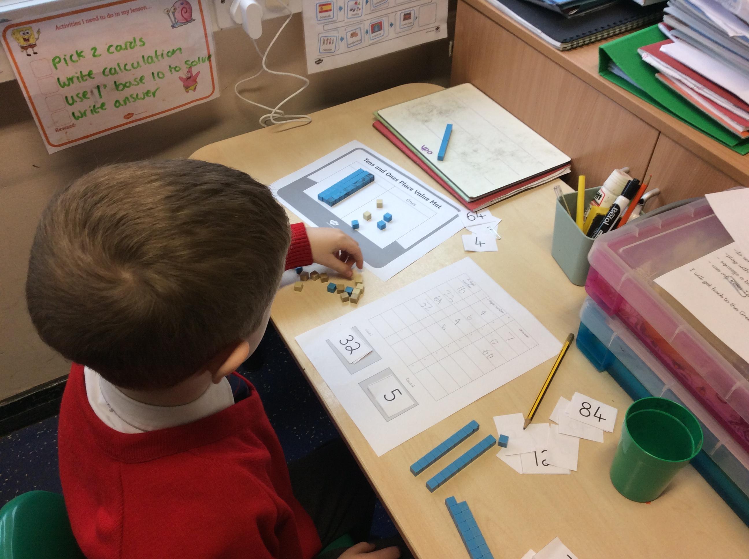 We have been learning how to subtract 1 digit from 3 digit numbers crossing ten. We have been completing challenges and playing games to embed this skill using base ten and place value counters.