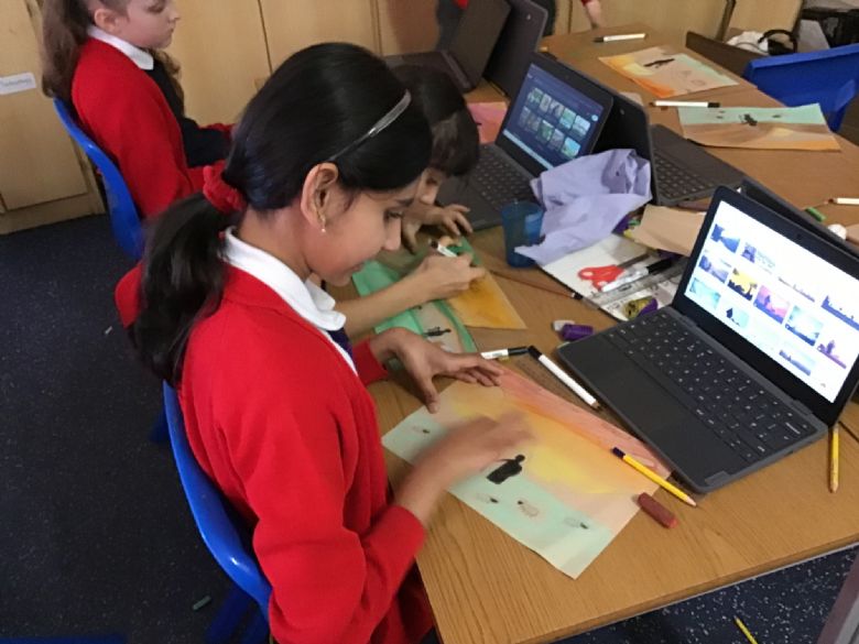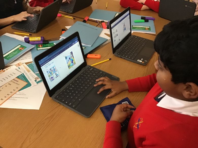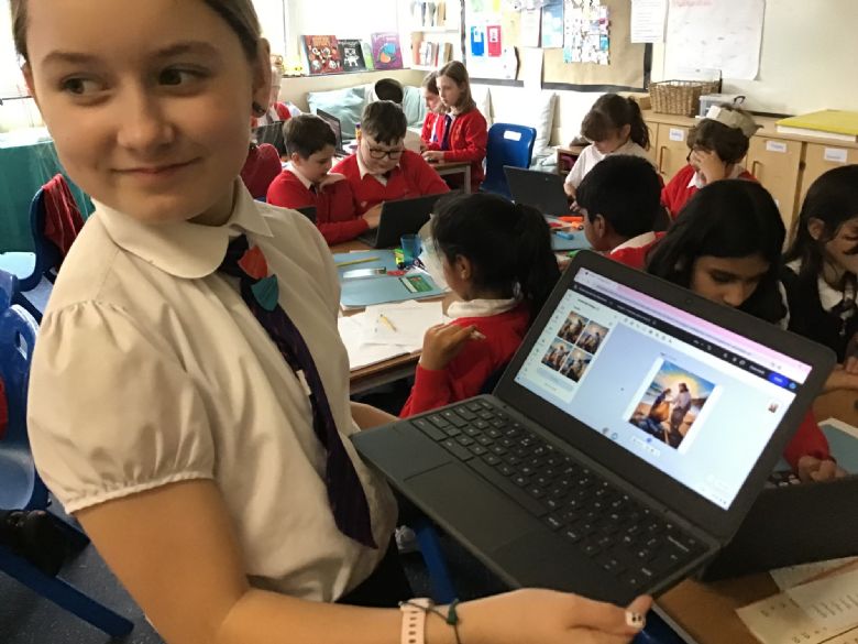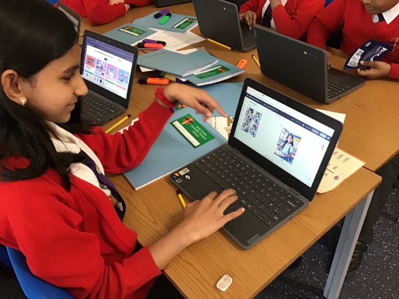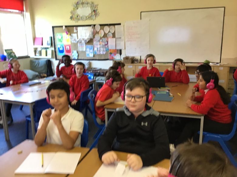 Computing - Online Safety - Year 5 used Google Now>Press>Play headphones to take part in an 'Immersive Experience'. The children listened to a scammer attempt to bully a child into giving away his mum's bank details. The experience reminded the children how to stay safe online and never give away personal information.