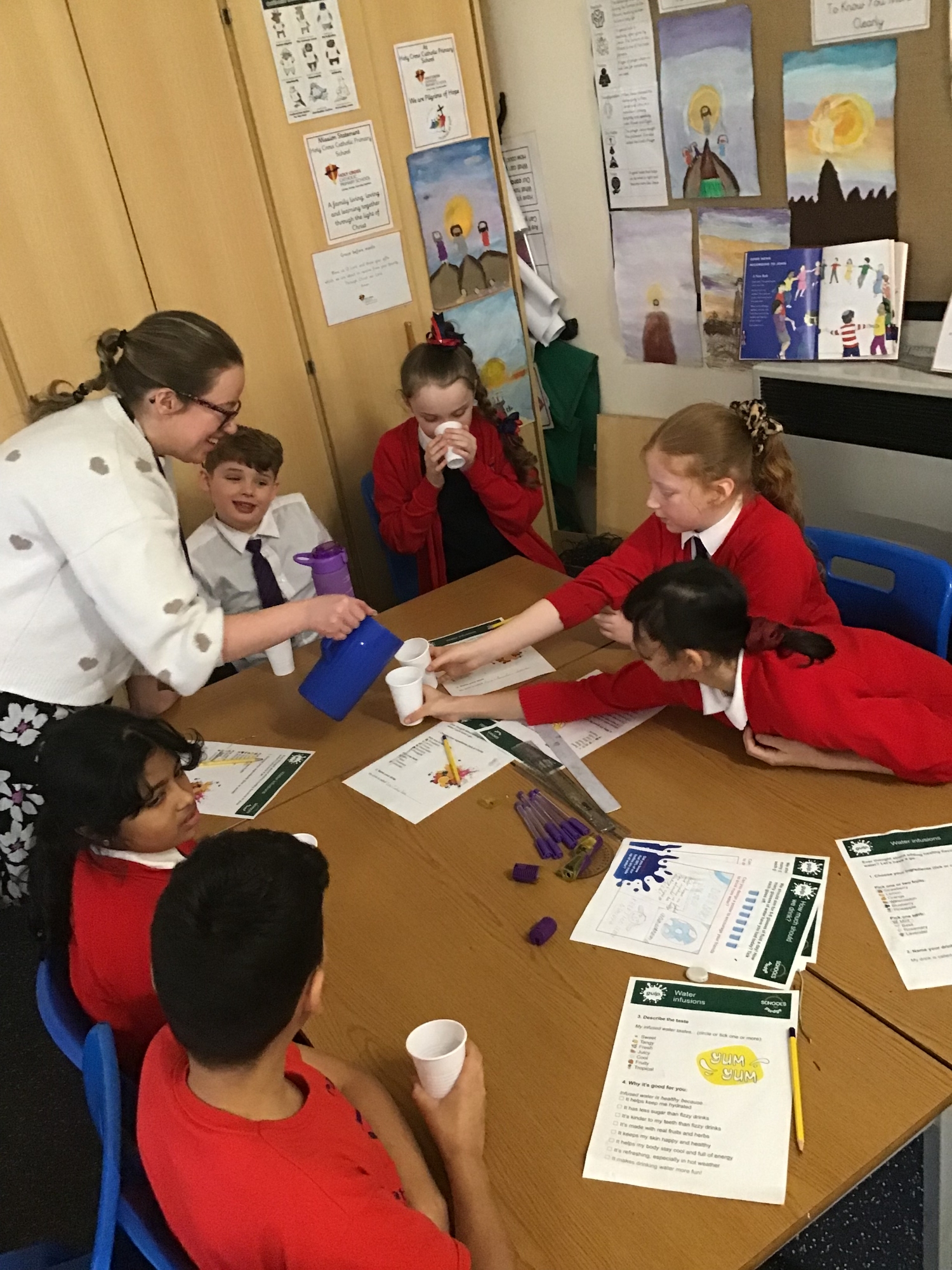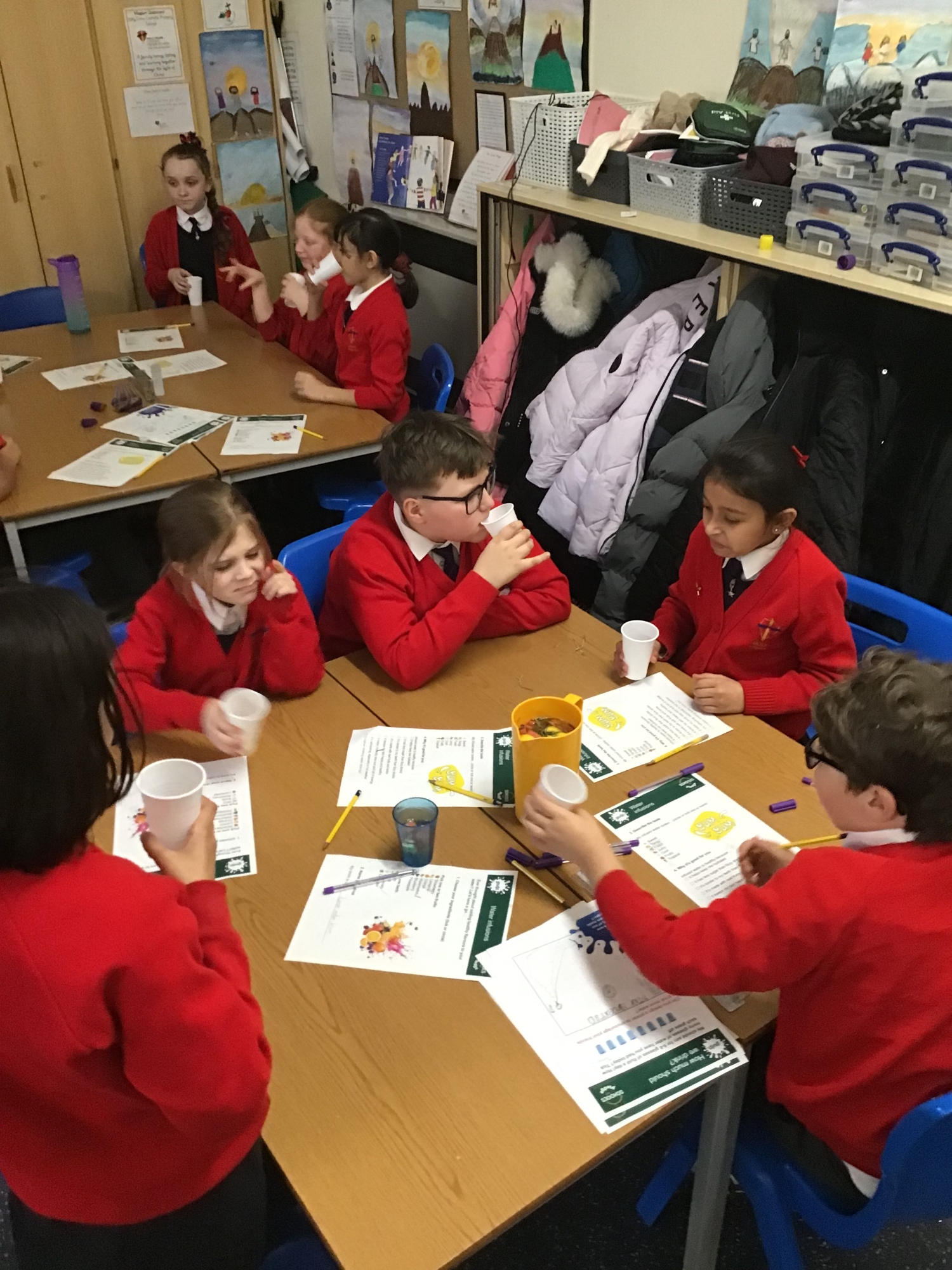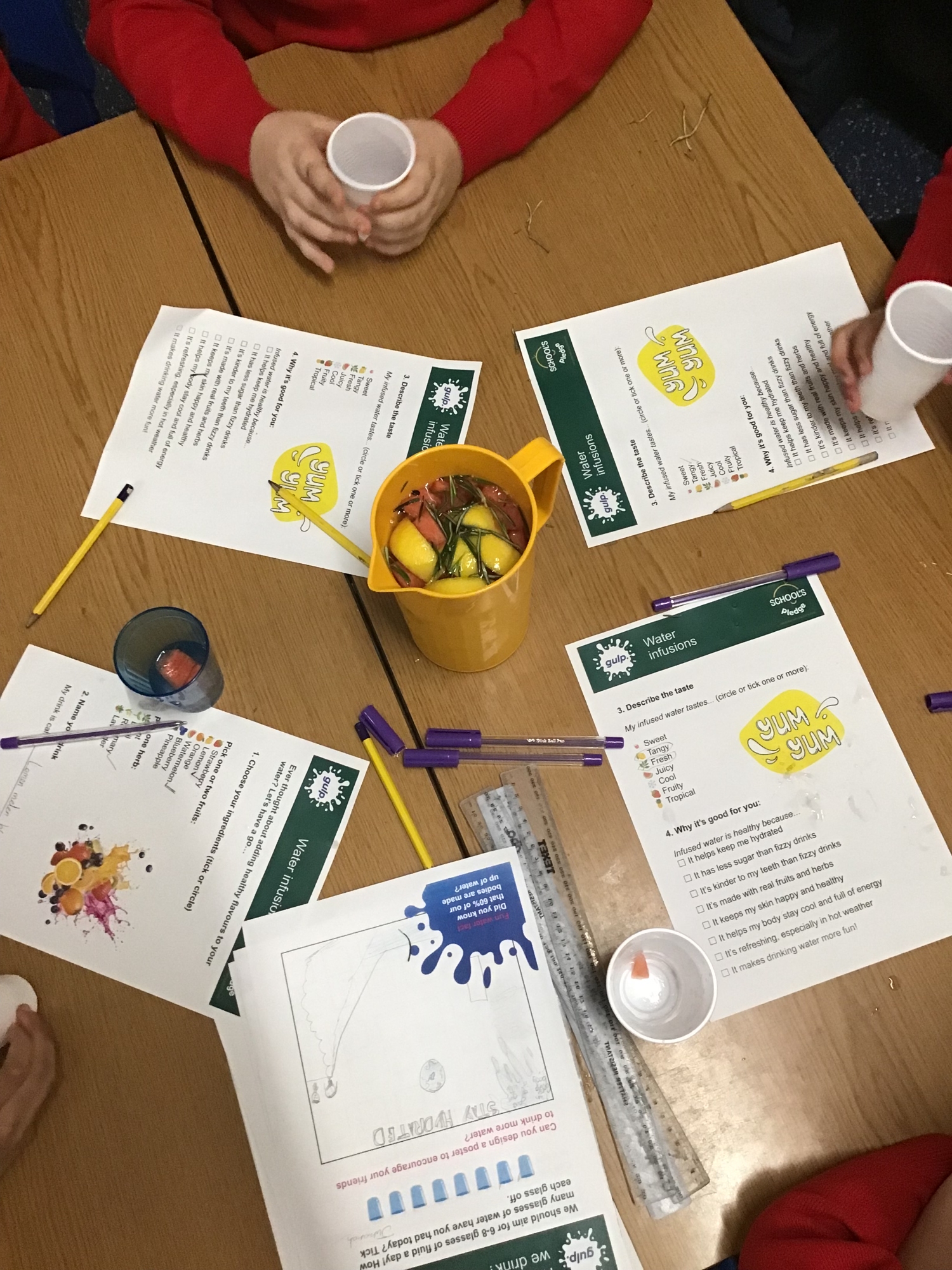 Year 5 explored the importance of hydration and why choosing water over fizzy drinks is better for our bodies. We investigated the sugar content in a range of popular drinks and were surprised by how much sugar some of them contained. To make water more exciting, we created our own flavoured waters by adding fruits and herbs, and the results were delicious!