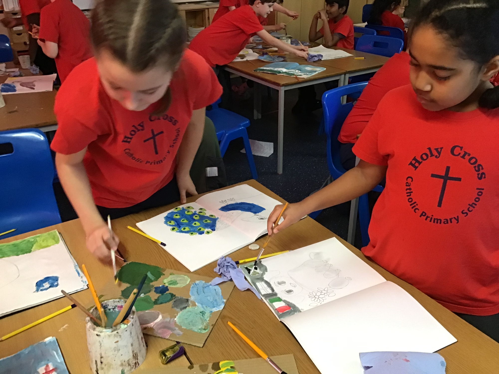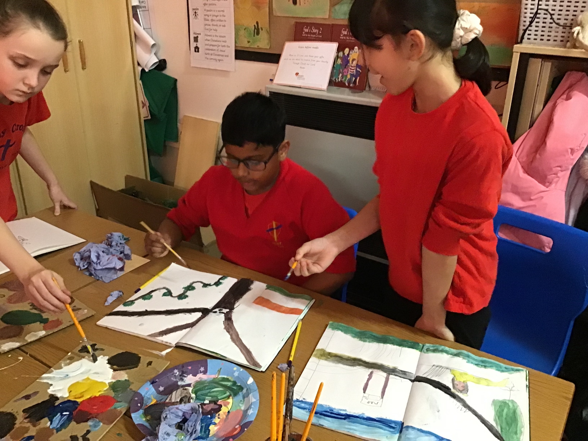 Religious Education - Creating artwork of the good shepherd - The children created artwork based on the theme of the Good Shepherd, thinking carefully about the qualities shown by Jesus and David. Through their work, they explored ideas of care, guidance, and protection, using art to reflect their understanding and personal interpretations.