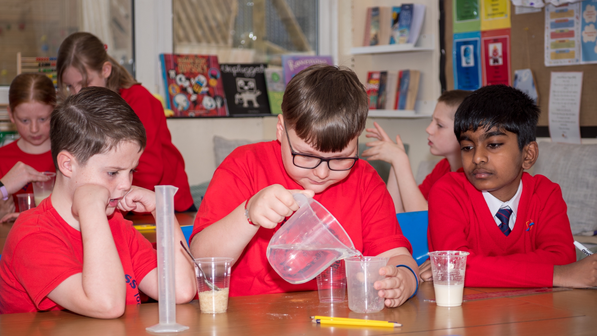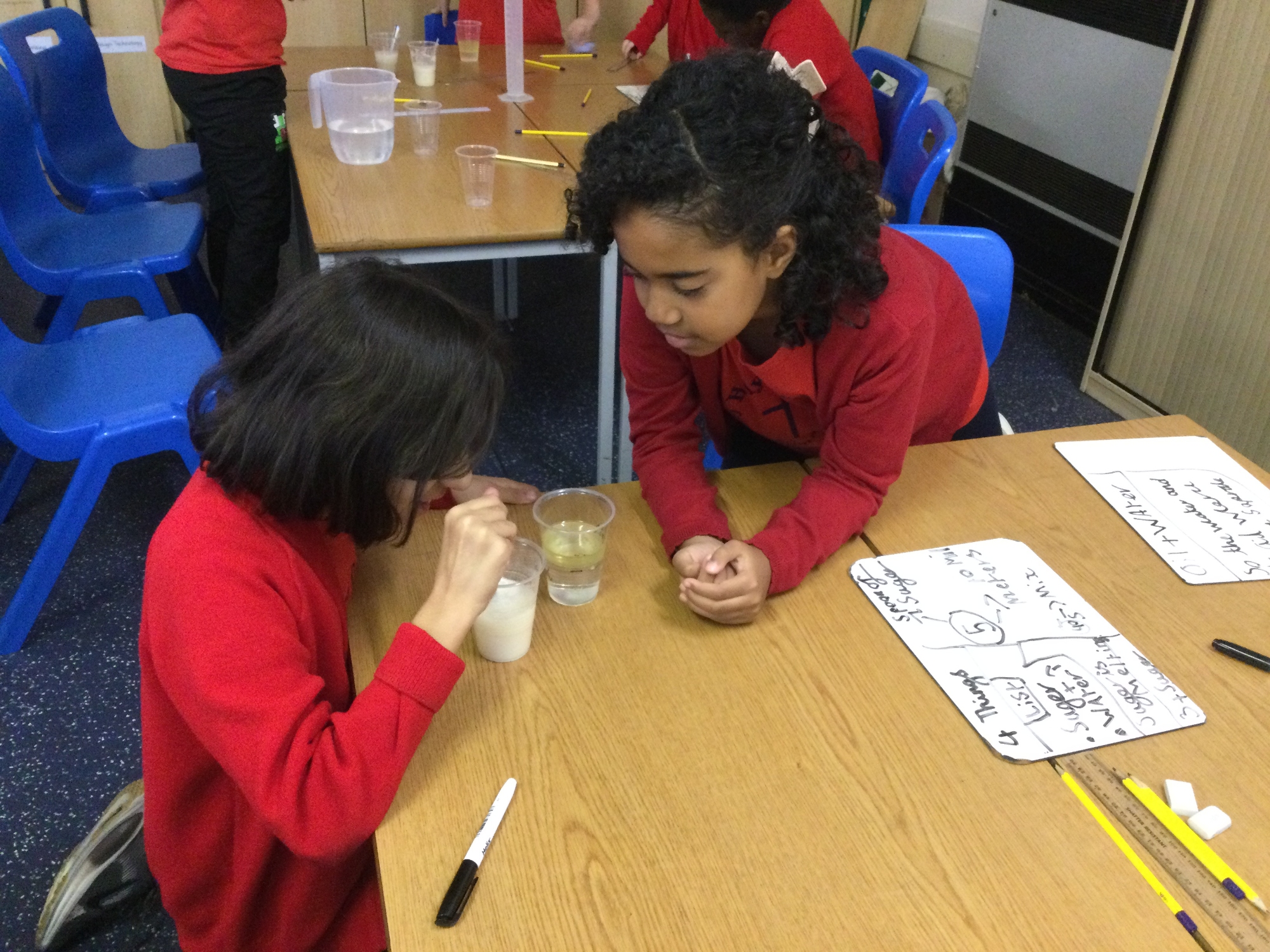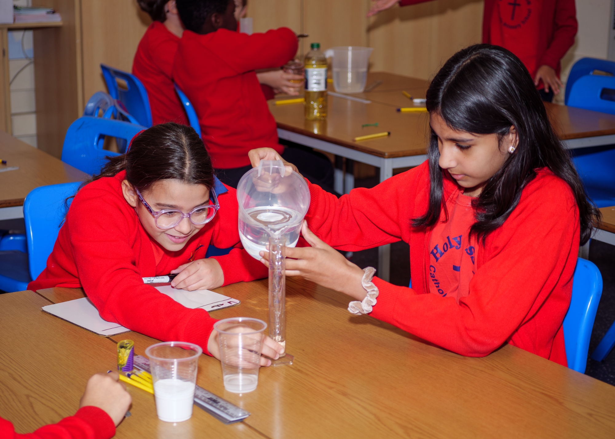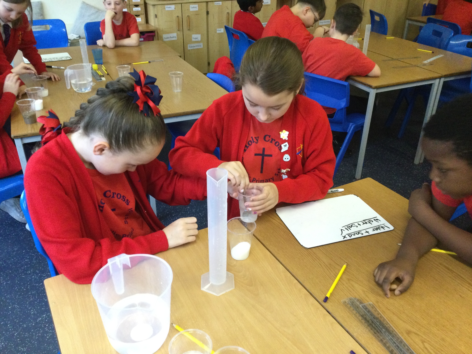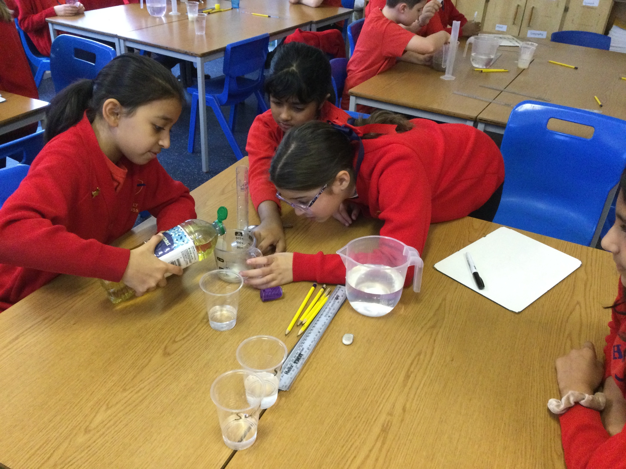 Science experiment – Exploring mixtures and solutions - In our science experiment, students explored the difference between mixtures and solutions by testing how various substances interacted with water. We observed which materials dissolved completely to form solutions, like salt and sugar, and which stayed separate, creating mixtures, such as sand or oil. Through hands-on investigation, students learnt how to identify solutions versus mixtures based on solubility and appearance, gaining a better understanding of how different substances combine in everyday life.