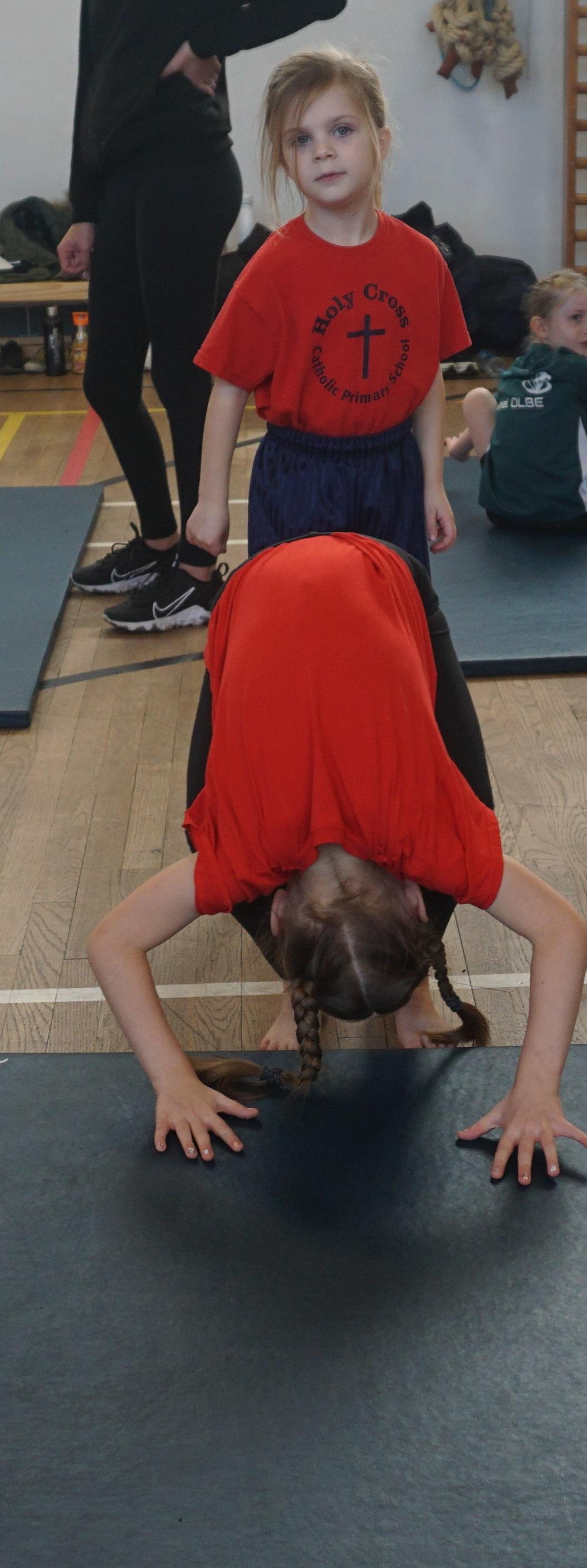 Some of the Year 1 and 2 children attended a gymnastics festival at Calderstones Secondary School. The children enjoyed taking part in a warm up and a game of the floor is lava. Then they learnt how to safely do forward and backward rolls and cartwheels.